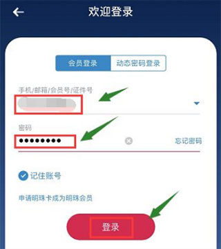 3、输入会员卡号或手机号就密码登陆,如下图所示;