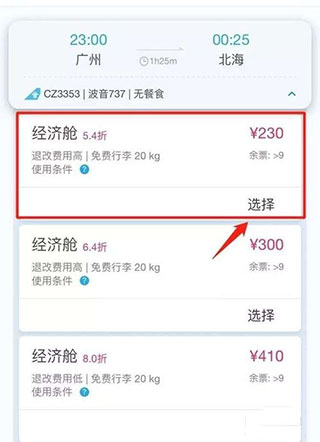 5、选择新的航班。