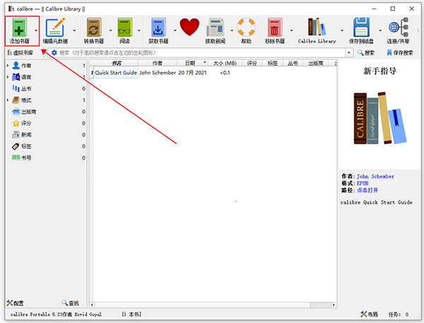 1、下载打开Calibre中文便携版;