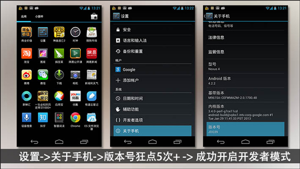 1、失易得数据恢复是通过adb程序与手机进行通讯的,所以需要手机先打开USB调试模式,而安卓系统打开USB调试模式的方法根据系统版本有所不同,通用的有三种。