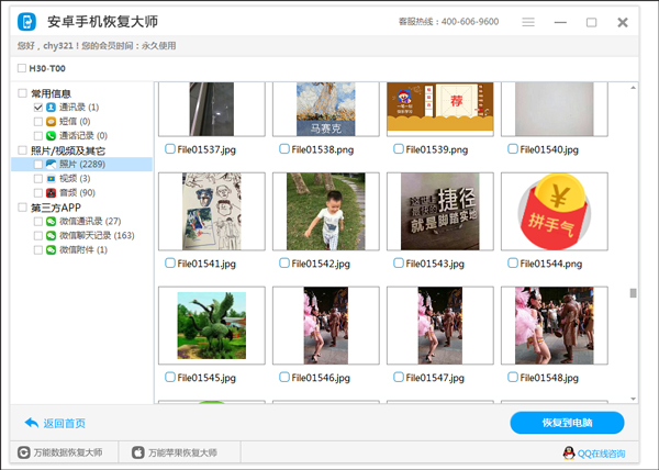 除此之外,失易得安卓恢复的系统还会自动将数据进行分类,双击分类就可以展开数据内容,从而便于用户预览文件,并通过勾选功能将需要的数据恢复到电脑当中,简直不要太简单,有需要的小伙伴欢迎免费下载体验。