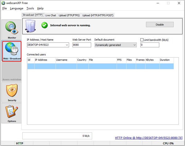 4、点击广播,里面提供了即时聊天、广播、上传等功能;
