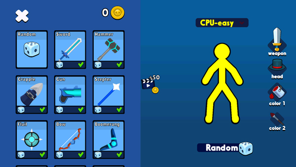 3、简约卡通的画风,经典火柴人格斗类游戏;