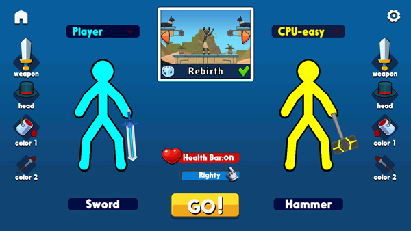 4、对抗的火柴人需要尽可能的打败对方。