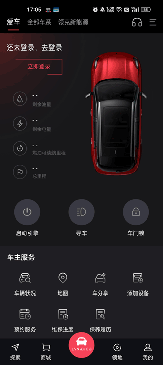 4、点开LynkCo,在这里可以可以实现车机互联然后对车辆进行控制,还可以进行预约保养可以。