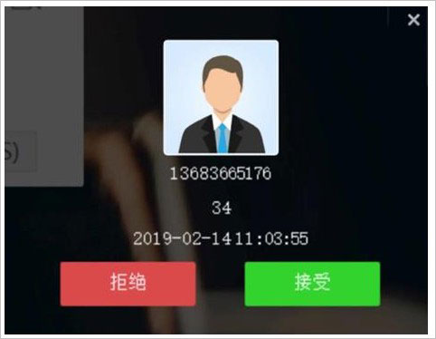 4、登录状态下,被邀请的参会人会收到振铃邀请,点击“接听”加入会议;