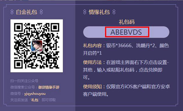 礼包内容:银币*36666、洗髓丹*2、颜色开启符*1
