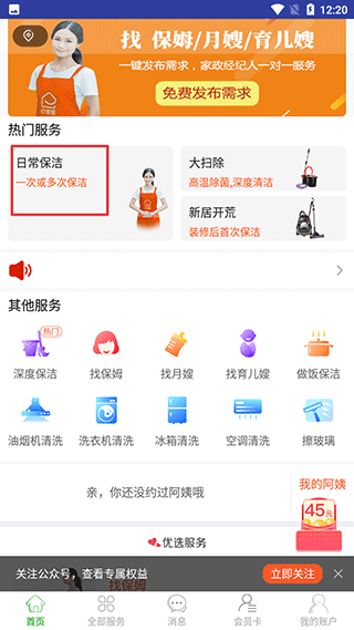 一、打开e家帮家政服务app,选择需要的服务,如日常保洁。