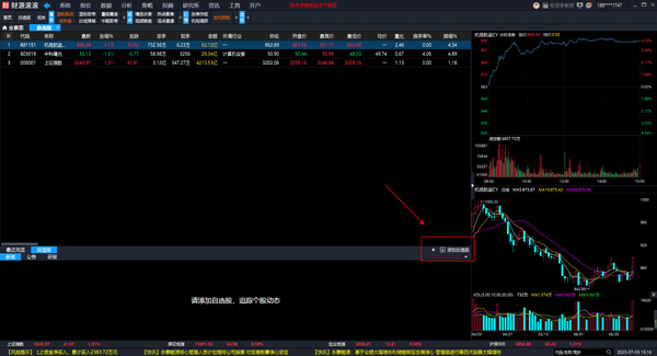 5、添加完成后在自选股界面左侧选中该股票,就能在右侧窗口查看该股票的分时走势图和日线啦