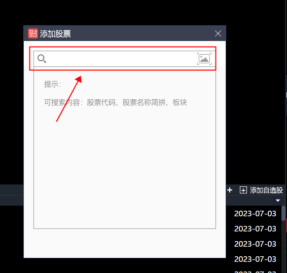 3、然后再搜索框中输入股票代码,或者股票名称简称