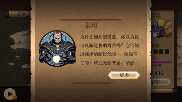6、打泰坦是一场消耗战,因为此时就算玩家升到顶级,也很有难度,因此不要太心急,看清他的出招,自己选对了武器调整好距离,慢慢的磨掉他的血就赢了。