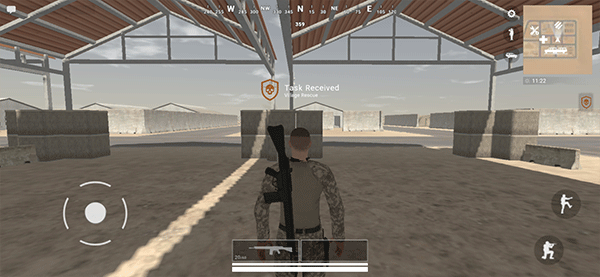 4、在游戏中利用左下角摇杆操控角色移动,点击枪图标即可使用;