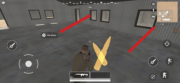 5、刚进入游戏的地方为我方区域,你可以根据地图位置进行弹药补给、使用汽车、补血等等,例如补弹药,在弹药位置后点击get ammo即可补给;
