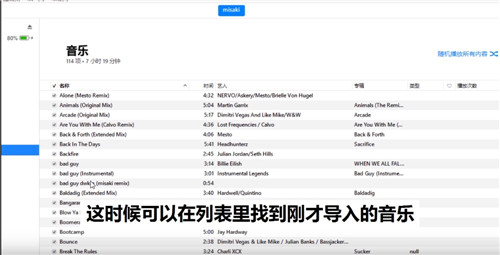 3、这个时候可以在列表里找到刚才导入音乐;