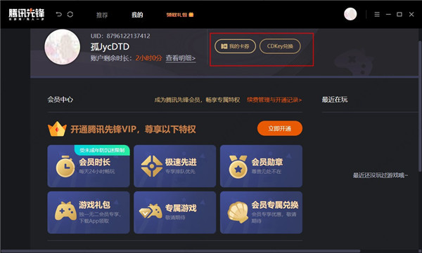 6、在“我的”中,可以查看自己的卡劵以及cdkey兑换情况;