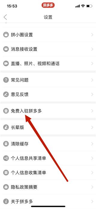 2、在设置界面选择“商家免费入驻”,点击进入;
