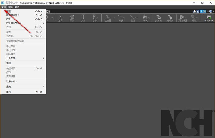 1、点击文件,可选择新建、新建空白图示、打开最近的项目等,自由选择。