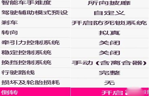 我的常用难度设置,本作强烈建议开拟真转向,手感比其他都好,感觉转向更灵敏。