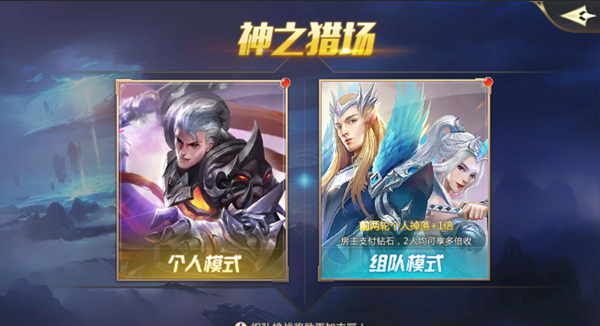 1、神之猎场分为单人模式以及双人组队模式;