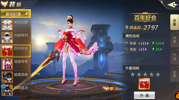 5、时装可以通过时装道具进行升星操作,升星可以额外增加属性;