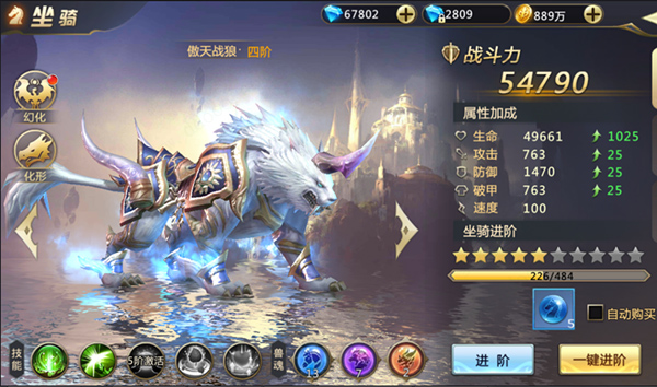 那坐骑要怎样升阶呢,常用的有“坐骑进阶丹”这一道具。玩家们可以很便宜的在商城买到或者任务奖励获得。