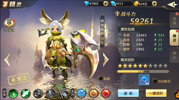 当我们有足够的精灵进阶丹就可以通过点击一键升星来进阶精灵了!