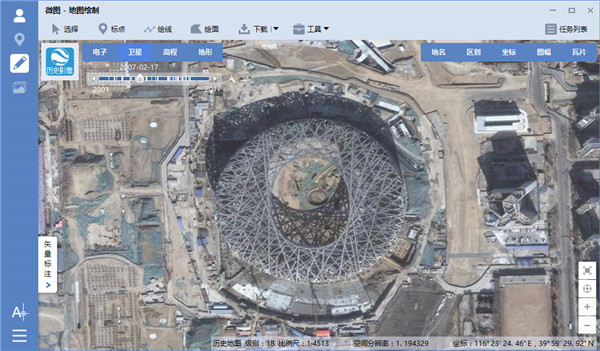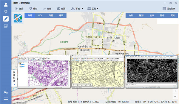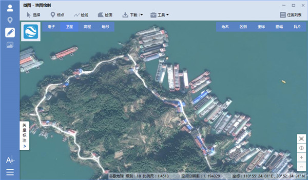 水经微图是在基于《水经注万能地图下载器》所有功能的基础之上,新增了专业GIS制图、CAD制图、照片管理和数据同步等强大功能的地理信息云产品,软件集在线地图大图拼接、地图重投影、瓦片重切片、地图标注以及矢量下载叠加于一体,旨在为考古、电力、水利、通信、物流、石油、国土、农业、林业等行业的用户提供一款运行稳定、功能丰富、界面简洁、操作简单、专业好用,且可以与手机移动端进行数据云同步的GIS产品。水经微图中的地图精度高,图像形象,与服务器连通,能够及时更新地图情况,还有专业的图拼接、地图重投影、瓦片重切片、地图标注、矢量下载、矢量叠加、CAD制图、专业GIS绘制、照片管理和数据云同步等功能;此外,软件内有专业GlS地图绘制、照片管理、CAD制图、云同步矢量数据、云同步照片、高清卫星影像下载等功能,可为用户提供高精度的地图,同时还支持图像数据裁剪和背景透明度,支持高程数据裁剪和背景透明度等,有需要的朋友请来下载经微图绿色版进行安装并绘图吧。