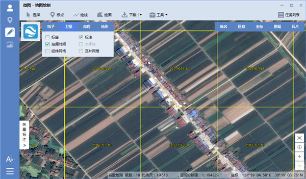2、影像拍摄日期查看、高清历史影像下载、原始高程数据下载、高程等高线提取、矢量兴趣点(POl)下载、全球矢量路网下载、全国建筑轮廓下载、影像矢量投影转换