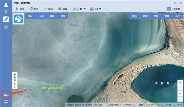 在水经微图绿色版中点击CAD绘制功能,可以启动微图CAD制图工具