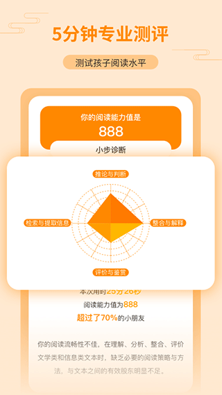 1、专业测评报告,进行阅读能力测评之后能够及时获得对应的测评解读报告;