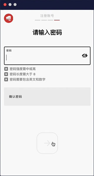 8、输入密码并重复确认,请注意此处密码需要满足条件才能通过进入下一步