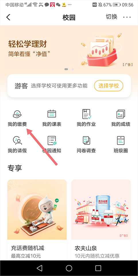 在打开的校园页面中点击【我的缴费】