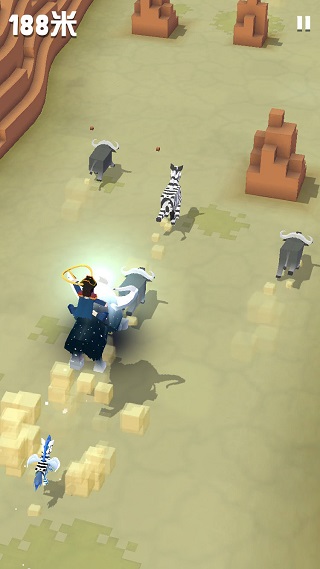 松开手指后,主角便会跳起,再次按下手指,就能跳到套索覆盖位置的动物身上,继续奔跑。