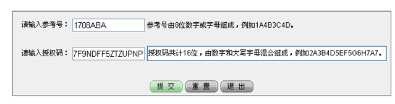 2.在银行柜台申请K宝时,会得到一张机密函件,打开机密函件,获取到参考号和授权码,在页面中输入,点击“提交”。