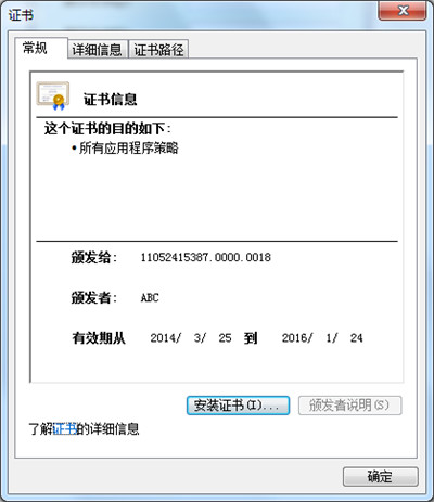 通过此功能可以查看证书的有效期、详细信息、证书路径等。如图所示: