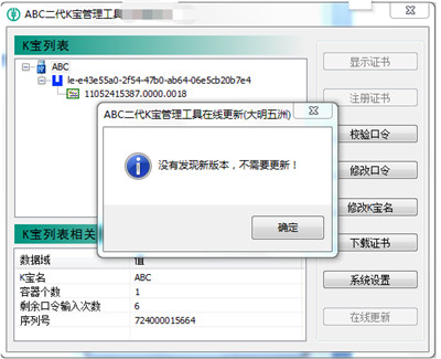 2) 如果用户使用出现问题, K 宝所带的软件己经有更新的版本,用户点击“在线更新”,即可自动进行升级,不需要用户手动操作。