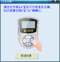 4.弹出K宝签名确认提示框,根据提示核对K宝屏幕显示内容是否正确。