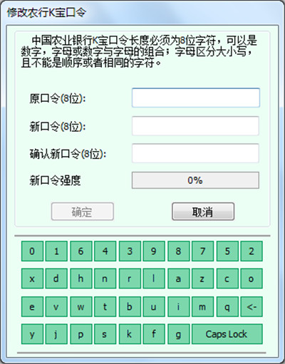 4.设置K宝保护口令,为增强安全性,在设置K宝密码时,连续或完全重复的数字和字母不允许使用,如:12345678、aaaaaaaa等。