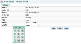2.进入转账交易确认页面,确认信息无误后,通过密码输入键盘输入支付密码,点击“提交”按钮。