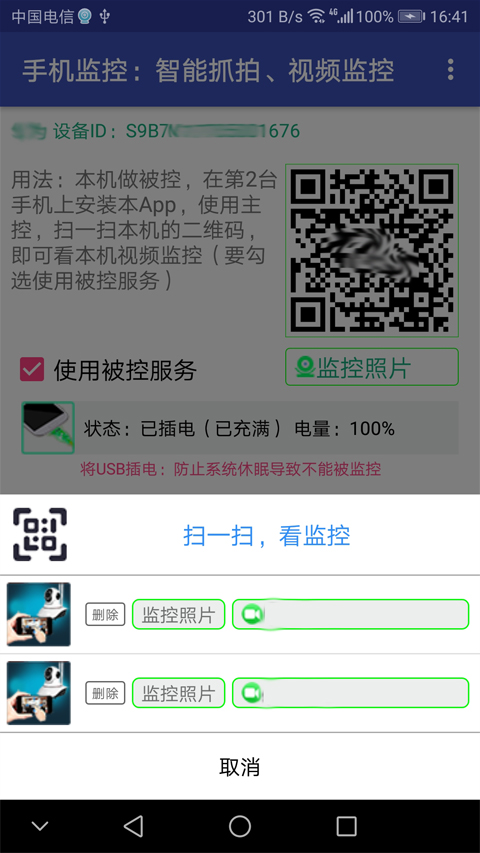 4、主控设备扫描被控手机的二维码就可以查看,被控手机抓拍的照片了。