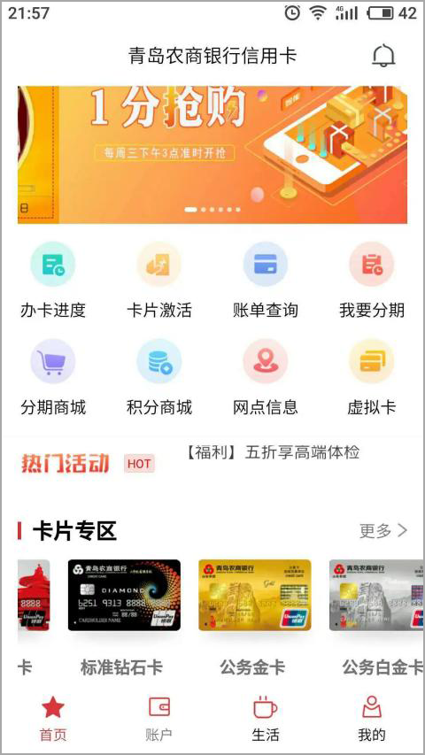 青农商信用卡app是一款手机信用卡应用程序。它借助信用卡基础功能服务,多种类的分期方式,积分商城以及涵盖各个领域的信用卡权益,为用户呈上了便捷智能的信用卡服务体验。线上预约办卡,办卡进度展示,卡片激活业务以及账单查询等相关服务,可以让用户足不出户就能了解到自己的卡片信息。专属的各类热门活动、线上商城、优惠商品等丰富权益,让您省钱省事更省心。如有不懂的地方也不用去线下营业厅排队,青农商信用卡app配备专属客服,会为您进行一对一的线上解答。