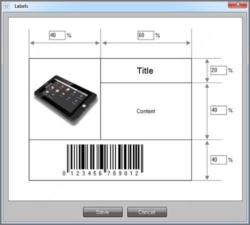 在打开的对话框窗口中,您可以设置精度为0.1毫米的条形码页边距。您还可以设置页面大小。Bargen支持从A0到A8的所有页面尺寸,以及自定义格式,该格式允许您将页面尺寸定义为所需的任何尺寸。使用字段“方向”控制页面方向。当您从主屏幕上单击“ 标签”按钮时,您将能够以百分比设置条形码标签列和行的宽度和高度。该设置按钮,可以选择该程序的用户界面的语言。