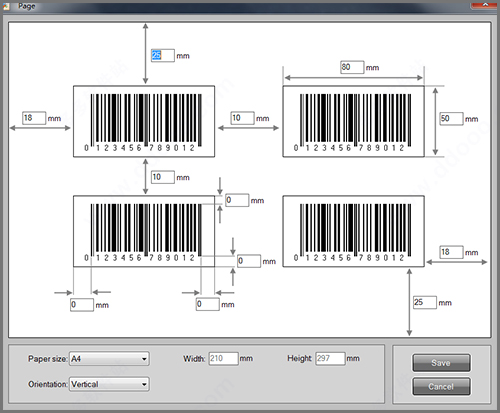 5、提供条形码标签的尺寸以及条形码之间的距离的设置,精度为0.1毫米