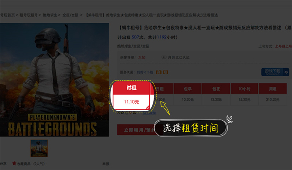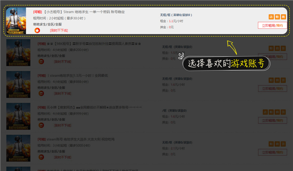 2、进入租号大厅,选择你想要租赁的游戏,如绝地求生;