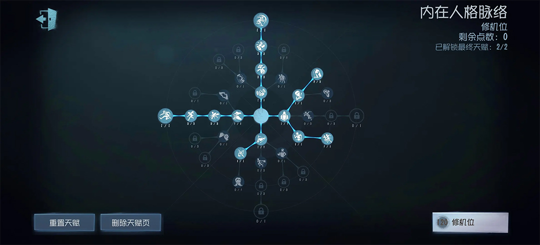介绍:基本只打前期的修机位加点,经常开局撞鬼又不怎么会遛鬼的点这个还能救一救,飞轮概率躲一刀,还能克制渔女水汽/蜡像打胶/杰克雾刃/小丑锯子/厂长木炭等多刀屠夫面前都能抢救一下,结伴效应让掏哥帮你顶一刀,上椅还能减减速;ob位玩这套的话把寒意改成自愈,莽一点前期拉到仇恨点这个遛鬼很强势,不过不带回光返照的话后期起不来有点虚,自信玩家去掉双弹点回光返照