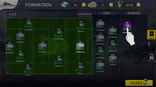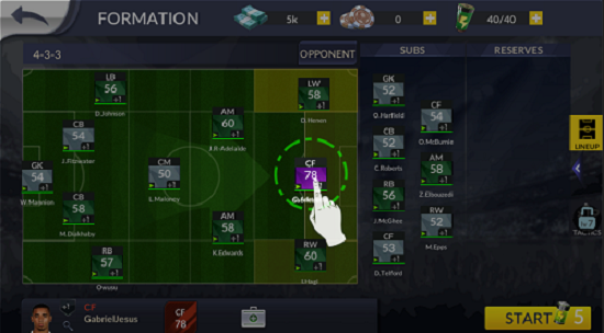 在游戏中进入阵型界面,11位首发球员可以随时进行拖动替换,补位及背包球员都可以及时更换,更换球员后可以重新拖动场上位置排布阵型。