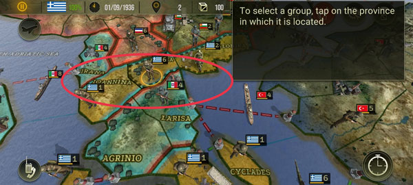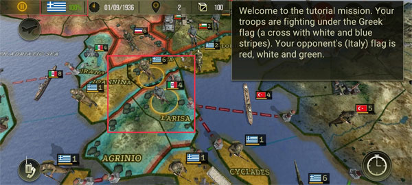 2、在游戏一开始,玩家的军队将会在希腊国旗(一个蓝白相间条纹的十字)下作战,而你的对手则是(意大利)的旗帜是红白绿三色。