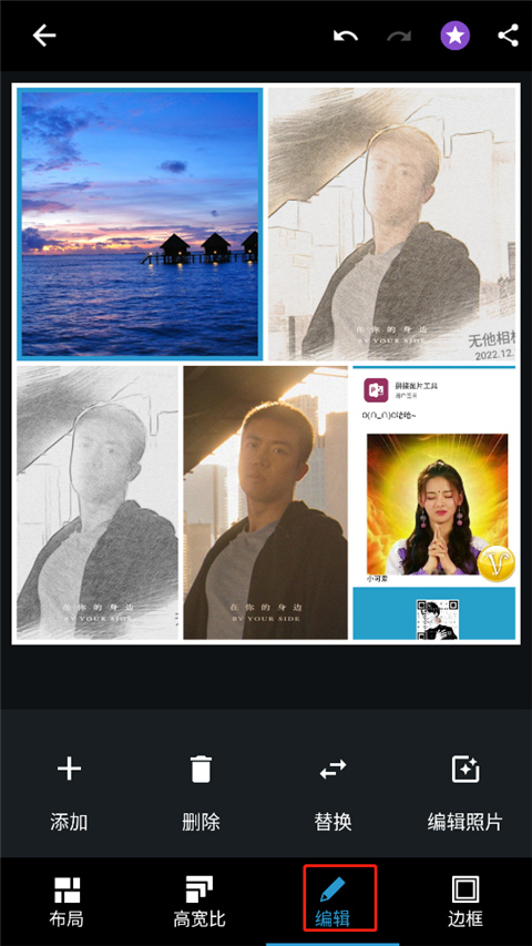 4、然后点击编辑,你可以编辑自己拼图中的每一张图片,编辑完后,保存即可。