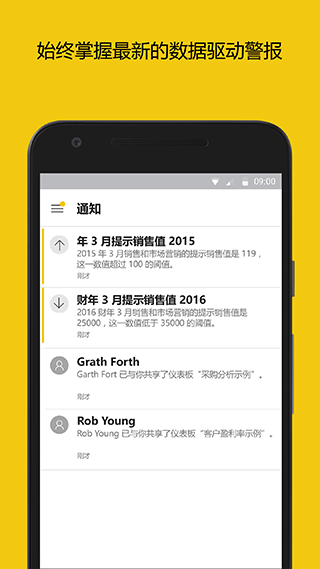 power bi是微软为手机用户开发的一款业务数据监控的软件,您能通过软件随时随地监视和访问业务数据, 轻松地查看您的 Power BI 仪表板、与其进行交互、将其与同事共享,几分钟内就能发现各种见解。用户可以在软件上面进行最新业务的共享,而且数据都是通过互式图表、地图和图形呈现出来非常的直观好用,让用户的办公效率更加的高效。同时还支持随时对比图标跟曲线图查看业务曲线及时调整。赶快来下载体验吧!