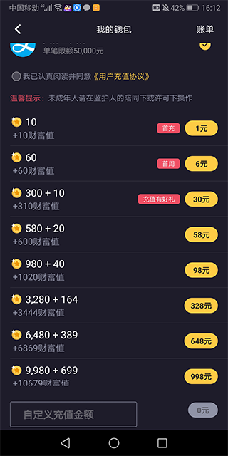 充值入口在钱包页面下方